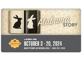 The winning bidder will receive two tickets to any performance of Alabama Story running October 3 - 20, 2024 at the Ivoryton Playhouse in Ivoryton.