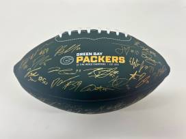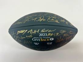 Green Bay Packers replica full-size football featuring signatures of all players and the coaching staff at the beginning of the 2023 regular season.