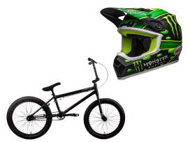 Monster Energy X Hyper Pro BMX 20in bike and Bell MX-9 MIPS motorcycle helmet (Size XL).