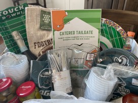 Use the $250 gift card to host a catered tailgate for up to 10 people and also enjoy this basket full of goodies:
