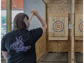 Come and experience the joy and fun of axe throwing at PerpleBunny's Axe House!