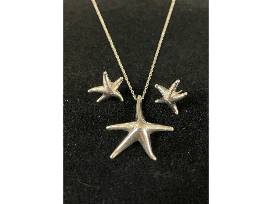 This is a sterling silver set including necklace with chain and earrings by Tiffany & Co. This Starfish design was created by Elsa Peretti. It comes with a fair market auction evaluation from Haddonfield Fine Jewelers in Haddonfield, NJ.
