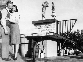 Throughout the years, small changes have been made to the menu, like the addition of the Whoopskidawg in 1989 and the Superchic™ in 1991. However, the Superdawg™ recipe, the original trademark figures (continuing to flirtatiously wink at each other), and the drive-in concept have not changed. Customers can still order from their car and have a carhop deliver their order on a tray. Maurie and Flaurie's attention to quality products and service, preparing each customer's meal to order, affirming the belief that the customer is always right, and insisting that the customer should always be treated as family continues today.