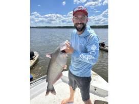 These blue catfish, which are an excellent eating fish, tend to get BIG, with fish in the 40lb + range on the table.