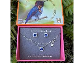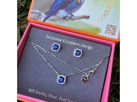 Material: The necklace and earrings are crafted from solid 925 sterling silver and overlaid with platinum to ensure durability and a luxurious finish. Each lab-created sapphire is carefully selected for its deep, rich color and brilliance. The chain measures 18 inches and has a lobster clasp. All pieces in the set are hypoallergenic.