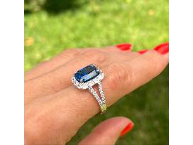 Design: The bold ring features a striking blue sapphire as its centerpiece, exuding a captivating brilliance. The sapphire is surrounded by intricate micro-pave detailing that runs the length of the band, adding an extra layer of sparkle and sophistication. This design enhances the sapphire's natural beauty, creating a harmonious and sophisticated look that is sure to turn heads.