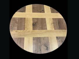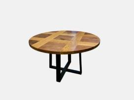 Beautifully Handcrafted Solid Walnut Custom Round "Hashtag" Walnut, White Oak Table with Heavy Steel Legs