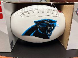 This is an official Adam Thielen Autographed White Panel Football donated from the team as Carolina Panthers Memorabilia.
