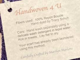 1This beautiful purple scarf is hand woven using 100% rayon boucle, hand-dyed by Tracy Schuh.