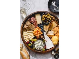 Set up a plate of meat, cheese and more at your home with this Charcuterie Board set! Included is a large bamboo charcuterie board, with room for meat, cheese and fruit, along with a drawer filled with cheese knives. Also included is a guacamole and salsa bowl set and a bottle of Luisa Pino Grigio.