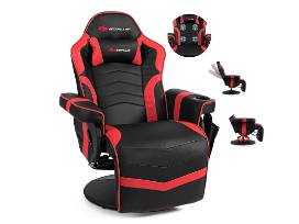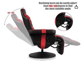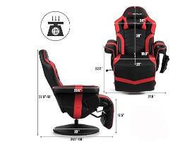 POWERSTONE Gaming Recliner Massage Gaming Chair with Footrest Ergonomic PU Leather Single Sofa with Cup Holder Headrest and Side Pouch, Adjustable Living Room Chair Seating, Red.
