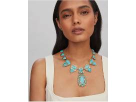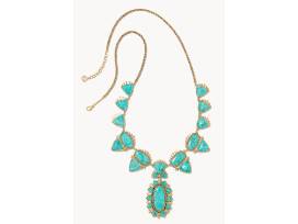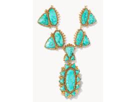 An unbridled beauty. With an eye-catching silhouette and vibrant stones, the Havana Vintage Gold Statement Necklace in Variegated Turquoise Magnesite is a work of art handcrafted for the modern cowgirl and anyone looking for a piece of the rodeo lifestyle.