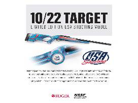 Ruger is proud to support USA Shooting with the USA Shooting 10/22 Target. This limited edition 10/22 rifle boasts a blue and red laminate ambidextrous barracuda-style target stock, satin blued barrel and USA Shooting coin