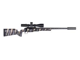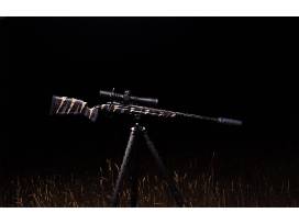 - 6MM Creedmoor - We chose 6mm Creedmoor for its flat trajectory, wind defying ability and light recoiling making it perfect whether you want to entice coyotes into your call setup or stretch it's legs on a speed goat that's camped out in the wide open.