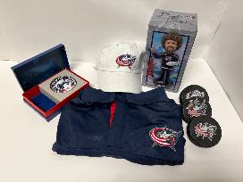 Get ready to cheer for the Columbus Blue Jackets with this ultimate fan package! This exclusive collection includes signed memorabilia featuring a bobblehead, three autographed pucks, a stylish hat, and a jersey-perfect for showing off your team spirit. To top it all off, you'll receive two tickets to the exciting game against Washington on December 12, 2024. Whether you're at home displaying your prized collectibles or at the game cheering in style, this package is a must-have for any true Blue Jackets fan!