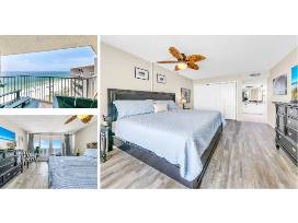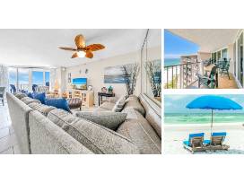 Treat yourself to a getaway in Panama City Beach with 5 nights in the cutest 2BR/2BA condo located steps from the Gulf of Mexico! This amazing condo overlooks the sugar-white sands and emerald waters of the Gulf. Catch the sunset or sunrise on your private balcony. With easy access to all THREE pools (one seasonally heated) and loads of other amenities, be prepared to have the vacation of a lifetime! There's a king bed with balcony access in the master, queen beds in the guest room, and two rollaway beds in the living room, sleeping 6 guests comfortably. This Gulf Front condo features a full kitchen, multiple flat-screen TVs, one smart TV in the master bedroom, a bench with hooks right when you walk in to lay your beach bag on, and a washer/dryer. At the end of the day enjoy a movie on the oversized sectional couch with your family. This is a beach lover's dream!!! (5 days subject to availability and must be in the months November, December or April)