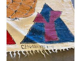 Handpainted cotton rug by C. Heller 90" x 52"