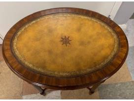 1Maitland Smith oval side table with leather inlay top 27"H x 20"D x 14"W
