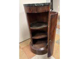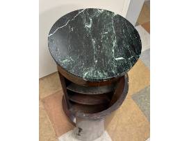 Round wood table with green marble top & 2 shelves 28.5"H 13" diameter