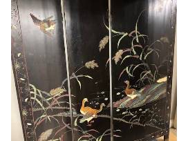 0Vintage Asian design four panel double sided screen 64"W x 72"H