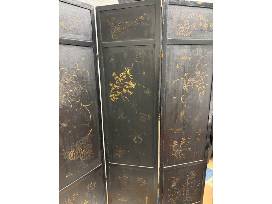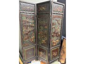 1Vintage three panel wood carved screen double sided Asian design 51"W x 72"H