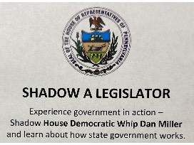 Up to 4 participants will have the opportunity to meet with Representative Miller in Harrisburg, observe the House of Representatives in session and be recognized on the House floor, learn about the legislative process, and take a tour of our impressive State Capitol.