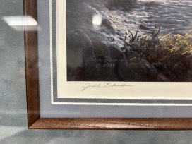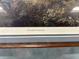Cherished Companions by Jesse Barnes c 1995 is triple matted and surrounded by a dark brown wood frame.