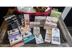 Winner of this basket will win an assortment of false lashes, lash glue, spa socks, false nails, and earrings.
