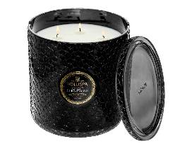 Voluspa's unique coconut wax blend is hand-poured into a 123 oz. glass vessel adorned in Maison pattern and is topped with a matching lid that keeps the candle dust-free when not in use. The multiple wicks allow you to enjoy fragrance throw for 250 hours. Our candles are hand-poured in the United States and feature our proprietary, clean-burning coconut wax blend and 100% natural wicks. Our products are free of phthalates, pesticides, parabens and sulfates and are never tested on animals. Up-cycle this best seller into a keepsake after the last burn.