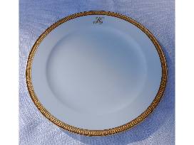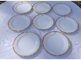 1Okura Art China plates (Large). Set of eight. White porcelain with gold band. Monogram H. Approx. 26 cm (10.25 in) diameter.