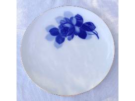 1One Noritake Okura China plate. White porcelain with blue rose design and gold band. Approx. 27 cm (10.6 in) diameter.