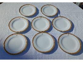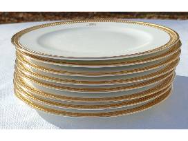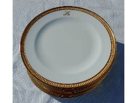 1Okura Art China plates (Medium). Set of eight. White porcelain with gold band. Monogram H. Approx. 20.3 cm (8 in) diameter.