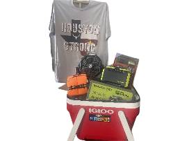 Be proactive with this package which includes a MARBERO Portable Power Station 150Wh Camping Solar Generator, Camping Fan with LED lantern, Bottle of Wine, Igloo Cooler, Batteries and a Houston Strong Tshirt to remind you can do it!