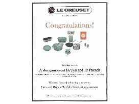 But Wait there is more....Shopping event for you and 10 friends at the Le Creuset Houston Premium Outlets, including a cooking demonstration, education of Le Creuset products and lots of fun!