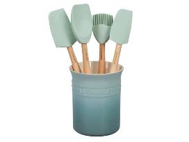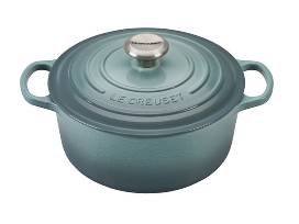 Le Creuset Signature Dutch Oven, Heritage Casserole Dish, Tapas Dishes, and Enameled Cast Iron Trivet all in Sea Salt. Also includes Stainless Sauce Pan, Non Stick frying Pan, Loaf Pan, and Craft Series Utensil Set. The set alone is worth over $1,230