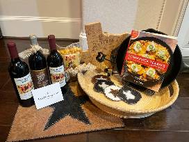 Homesick Texan's Cookbook, $75 Taste of Texas Gift Card, a Texas place mat, Bucees Beaver Nuggets, Texas Cutting Board, Three Texas Wines and much more Y'all!