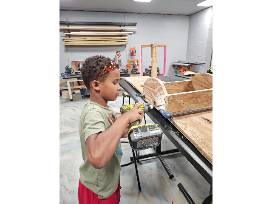 Bid on this original Hangar inspired birdhouse! Designed and built by The Hangar's Trade Program students