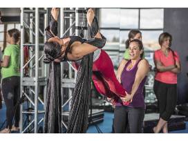 Aerial Fitness is a 45-minute class that will focus on building your core strength and flexibility as you learn exercises moving your body off the ground into the air. This class is a full-body workout that will emphasize building technique and proper alignment. You will learn the basic skills including climbing, inversions, and other basic movements that will help you build comfort and safety awareness with the equipment. This is a great class to get into shape, stay in shape, or prepare for the Aerial Silk classes offered.