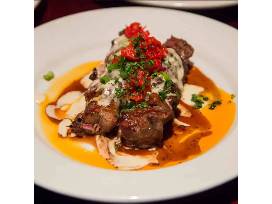 - A variety of tapas, preceded of course by a platter of their baked garlic and herb bread with smoked almond butter