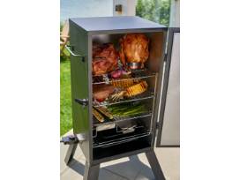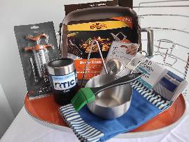 Up your BBQ game with this ultimate grilling bundle. Inside, you'll find a 30"" Cuisinart Electric Smoker for perfectly smoked meats, a deep-dish griddle for versatile cooking, and a 4-in-1 BBQ basket that covers all your grilling needs. Plus, a stainless steel beer can holder for that classic beer-can chicken, a stainless steel saucepan with a basting brush, and a marinade injector for full-flavored dishes. It even includes stainless steel soap for easy cleanup, a bistro apron, and quirky tea towels featuring a chicken, pig, and cow design.