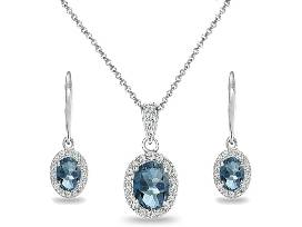 Sterling Silver Gemstone Earrings & Necklace Jewelry Set