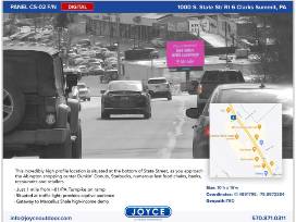 Dunmore Location: This incredible high profile location is situated at the intersection of Blakely and Green Ridge Streets, as the audience slowly approaches Interstate 81 and 380. The high traffic volume provides the audience with extended view time, thus being truly captive.