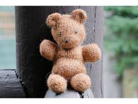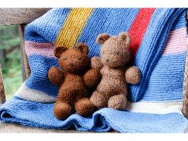 Two Hand-knitted Teddy Bears and Knitted Blanket