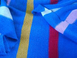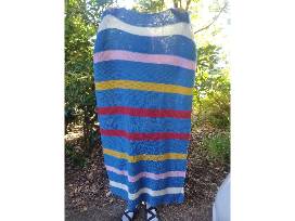 Note from the Knitter: I knitted a little sample from the leftover yarn I used for the blanket and washed it in cold water in the washing machine, then line dried it. I will include that sample. The yarn shrank a little bit, and got a little softer, but it didn't lose its color. I have not washed the blanket itself.