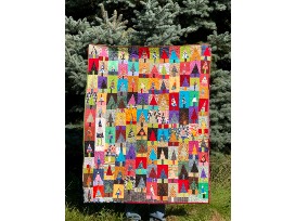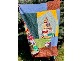 A thousand all-cotton scraps become a sweet little forest! This colorful quilt is perfect for curling up on the couch with some tea or crawling into bed with a book. No-waste cuddles! Holden thanks to Connie & Kari & Roz & Bergen at Lilla Barn for donating this treasure. Measures 52" x 65".