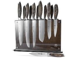 Each knife is forged from high-carbon stainless steel for exceptional sharpness and durability. Ergonomic handles ensure a comfortable grip and precise control. The stylish bonded ash block adds elegance to your kitchen while keeping your knives organized and accessible.