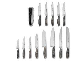 Elevate your culinary skills with the Schmidt Brothers Bonded Ash 15-Piece Knife Block Set. This premium collection includes: