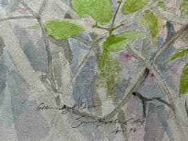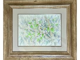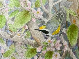 Matted and framed Golden-winged Warbler on watercolor. Framed size approximately 22x26 inches.