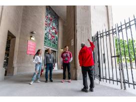 An Ohio State University VIP Stadium Tour provides a 90-minute, behind-the-scenes experience at Ohio Stadium, including stops at the press box, president's suite, Huntington Club, NetJets Landing Area, the band center, recruiting room, and the playing field and much more.