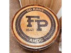 Table is made from an authentic bourbon barrel. The barrel top is laser engraved with your favorite Ram logo.